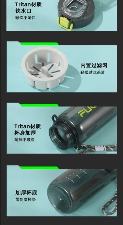容量:700ml 颜色:灰色 白色 紫色 材质:美国FDA公认安排的塑料材质TRITAN, 不含双酚A,婴幼儿安全级别,使用更放心 包装:单瓦盒包装